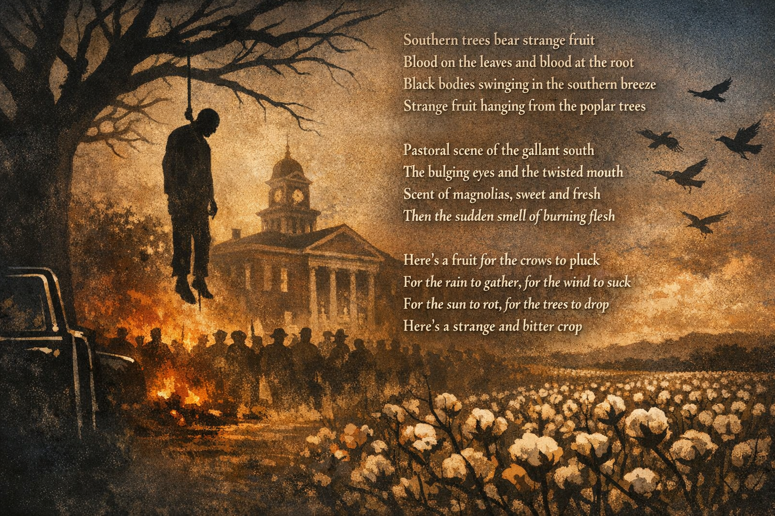 Strange fruit hanging from the poplar treesPastoral scene of the gallant south
